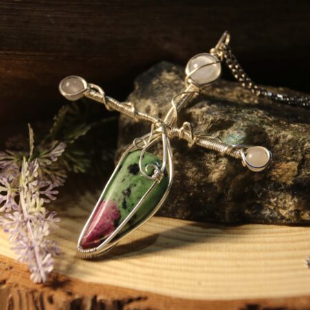 La malachite invita alla verità e alla guarigione profonda, mentre la labradorite bianca custodisce l’intuizione e protegge durante il viaggio interiore. -