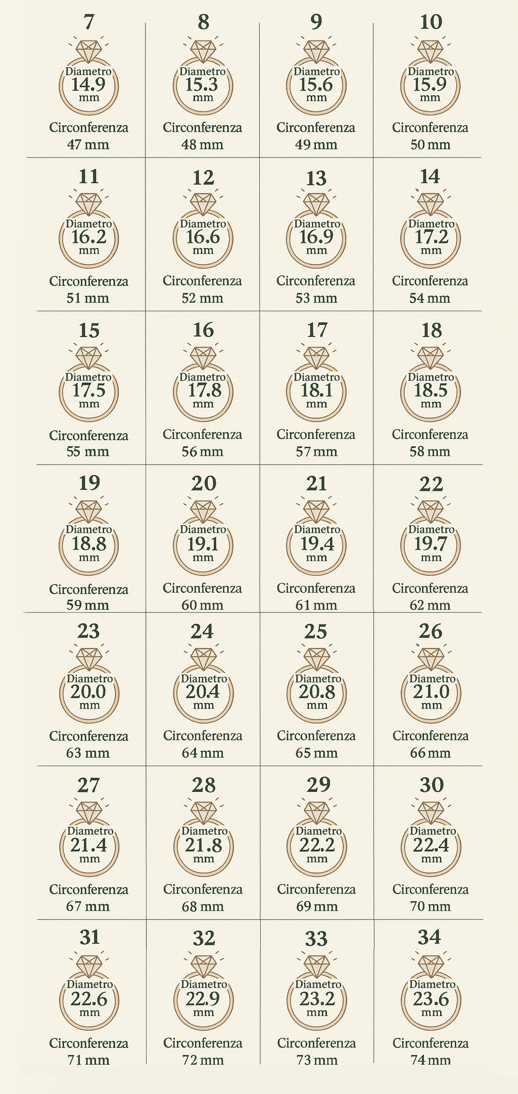 Suggerimento: se il valore non cade esattamente su un numero intero (es. 16,7 mm), considera anche il tipo di anello: