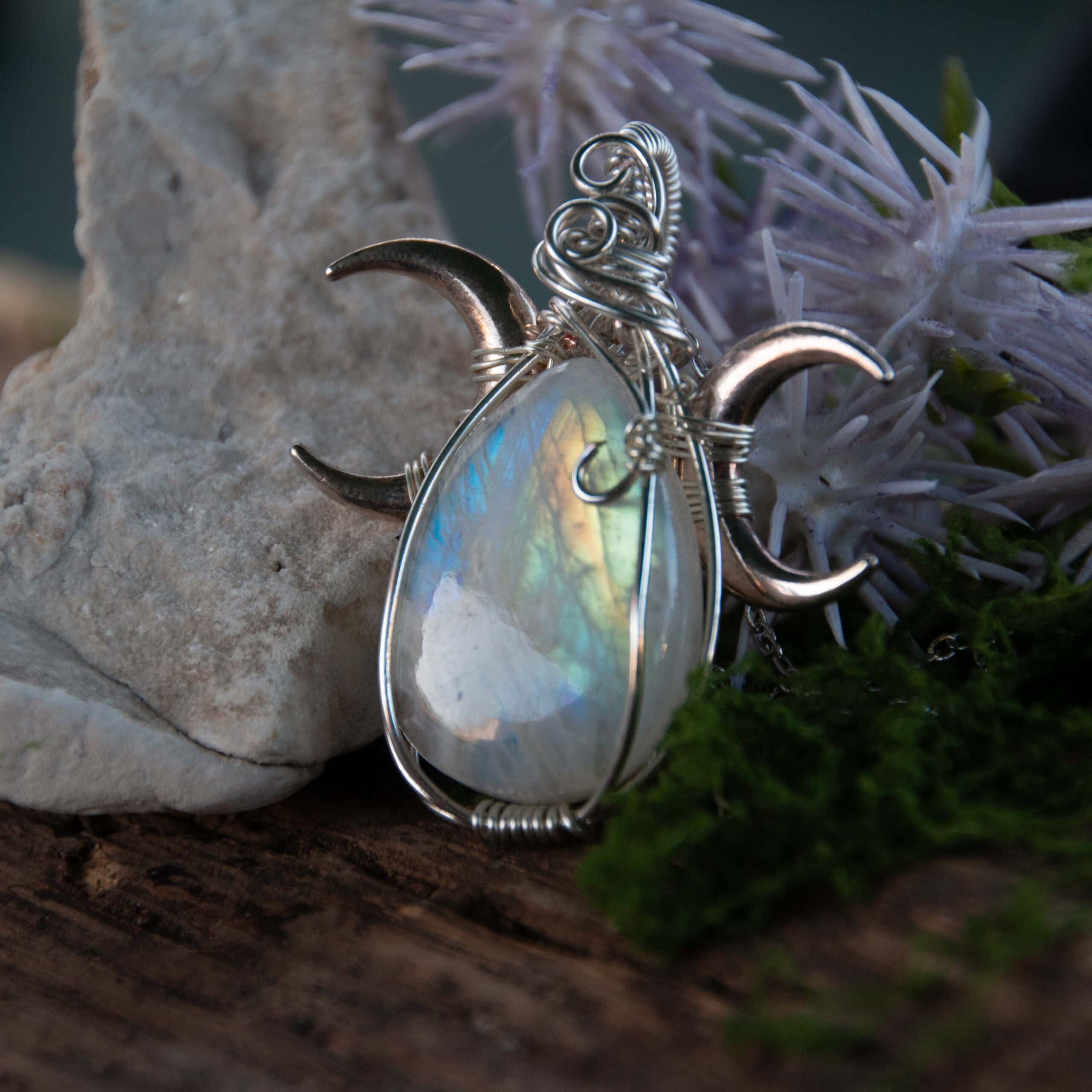 Questo talismano nasce per evocare la bellezza dei cicli naturali. Le tre lune rappresentano il fluire del tempo: nascita, pienezza, trasformazione.