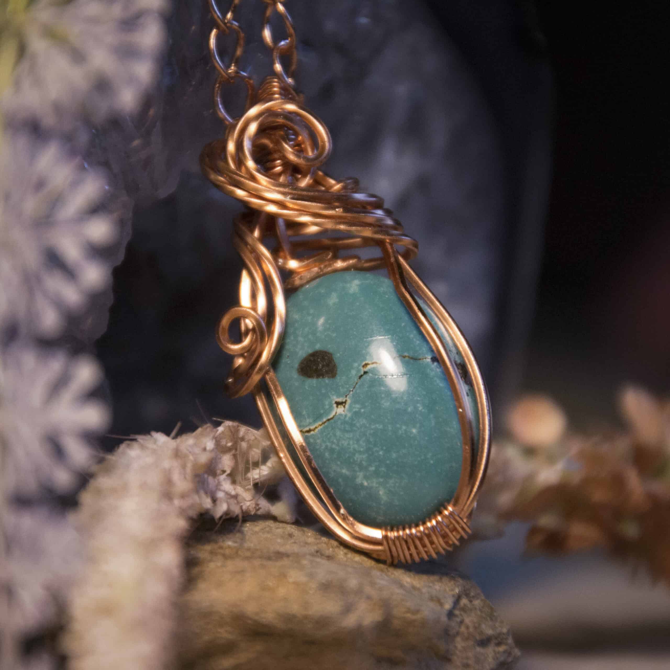 Questa collana nasce attorno a una pietra di turchese, da sempre considerata un amuleto di protezione e libertà. La sua energia accompagna chi affronta trasformazioni profonde, aiutando a esprimersi senza paura e a rimanere centrati nel proprio cammino.