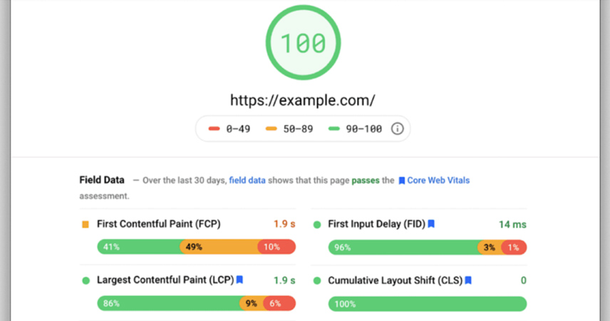Effettuo test regolari su Google PageSpeed Insights ottimizzando i parametri chiave dei Core Web Vitals: